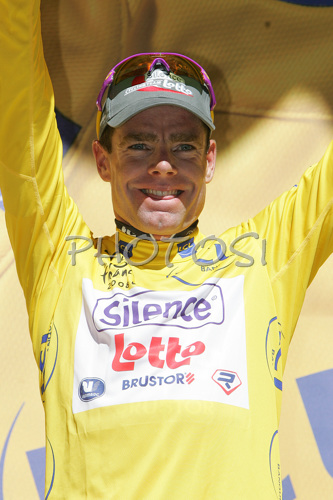 : Cadel Evans (Aus, Silence-Lotto) in yellow jersey as the best in general classification at 14th stage from Nimes to Digne les Bains (194,5 km) of Tour de France, 2008. The stage was held on 19th of July, 2008.
