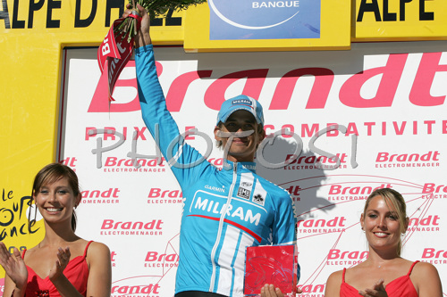 : The most combatitive rider Peter Velits (Svk, Team Milram) at the podium of the 17th stage from Embrun to L Alpe-d Huez of Tour de France. The stage was held on 23rd of July, 2008 and it was 210,5 km long.