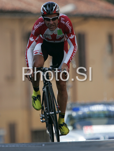 : Second placed Svein Tuft of Canada riding during Men elite time trial race of UCI Road Cycling World Championships in Varese, Italy. Men elite time trial of UCI Road cycling World Championships was held in Varese, Italy, on Thursday 25th of September 2008.