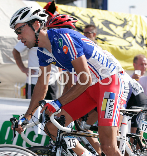 : Remi Cusin of France riding during Men U23 road race of UCI Road Cycling World Championships in Varese, Italy. Men U23 road race of UCI Road cycling World Championships was held in Varese, Italy, on Friday 26th of September 2008.
