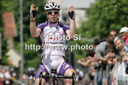 Kranj ,Slovenia - 31.05.2009 : Winner Jan Tratnik of Slovenia (Radenska KD Financna tocka) at the finish of category Elite / U23 at the circuit race Kranj (Po ulicah Kranja). The race was 78 km long and was held on Sunday, 31th of may, 2009. Photo by: Mitja Smid Bricelj