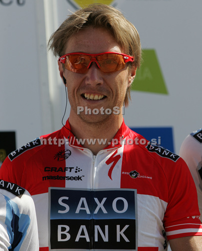 Koper ,Slovenia - 18.06.2009 : Nicki Soerensen of Denmark (Team Saxo Bank) at the start of first stage of Tour de Slovenie 2009 from Koper, Slovenia to Villach (Austria). The first stage was 229 km long and it was held on Thursday, 18th of June, 2009. Photo by: Mitja Smid Bricelj/PhotoSI