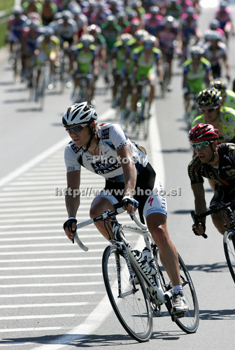 : Peloton leaded by Team Saxo Bank in the second stage of Tour de Slovenie 2009 from Kamnik to Ljubljana (Ljubljana castle). The second stage was 143 km long and it was held on Friday, 19th of June, 2009.