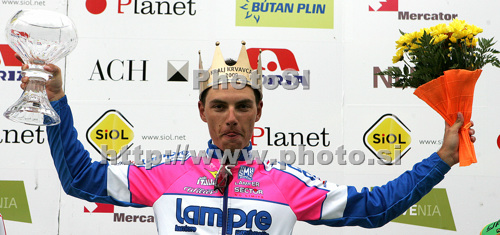 : Winner Simon Spilak of Slovenia (Lampre NGC) at the flower ceremony of the third stage of Tour de Slovenie 2009 from Lenart to Krvavec. The third stage was 177 km long and it was held on Sunday, 20th of June, 2009.
