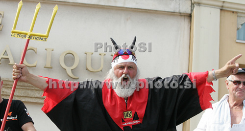 : Didi the red devil at the individual time trial in the first stage of Tour de France (15,5 km). The individual time trial was held on Saturday, 4th of july in Monaco.