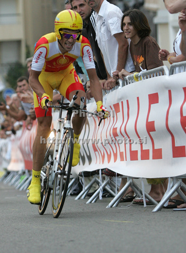 : Alberto Contador Velasco of Spain (Astana) riding at the individual time trial in the first stage of Tour de France (15,5 km). The individual time trial was held on Saturday, 4th of july in Monaco.