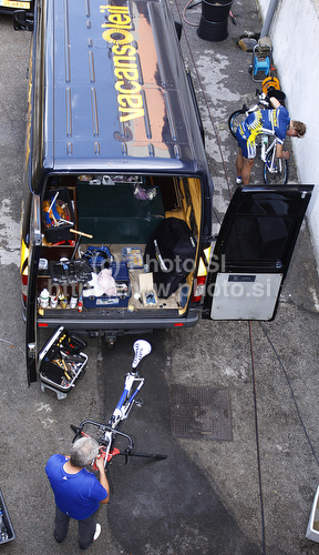 : preparing day before first stage of Tour de Slovenie 2010. Teams are getting ready on start of race in Koper, Slovenia, on Wednesday, 16th of June 2010.