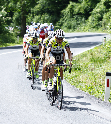 : Riders of ISD-Neri leading peloton during first stage of Tour de Slovenie 2010. First stage of 17th Tour de Slovenie 2010 in length of 173km was leading cyclists from Koper, Slovenia, to Medvode, Slovenia. First stage was held on Thursday, 17th of June 2010.