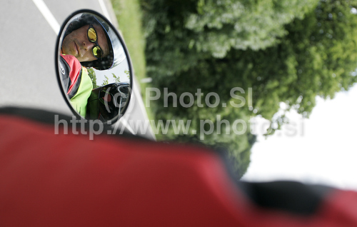: On motorbike during third stage of Tour de Slovenie 2010. Third stage of 17th Tour de Slovenie 2010 in length of 171km was leading cyclists from Bled, Slovenia, to Krvavec, Slovenia. Third stage was held on Saturday, 19th of June 2010.