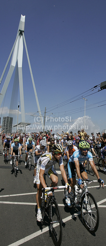 : Official start at the Erasmusbrug bridge of the first stage of the 97th Tour de France from Rotterdam (Netherlands) to Bruxelles (Belgium). The stage was 223,5 km long. The first stage of 97th of Tour de France 2010 from Rotterdam to Bruxelles was held on Sunday, 4th of July 2010 in Netherlands and Belgium.