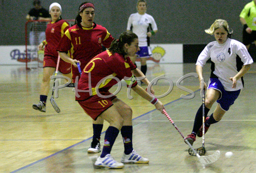 Idrija ,Slovenia - 06.02.2009 : Players during women floorball match between Slovenia and Spain. Qualifications women floorball match for World Championships between Slovenia and Spain was played on Friday, 6th of February 2009, in Idrija, Slovenia. Match ended with 4:4. Photo by: Primoz Jeroncic