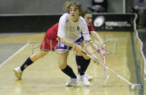 : Players during women floorball match between Slovenia and Spain. Qualifications women floorball match for World Championships between Slovenia and Spain was played on Friday, 6th of February 2009, in Idrija, Slovenia. Match ended with 4:4.