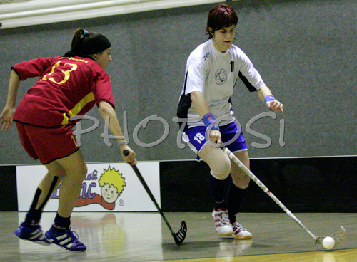: Players during women floorball match between Slovenia and Spain. Qualifications women floorball match for World Championships between Slovenia and Spain was played on Friday, 6th of February 2009, in Idrija, Slovenia. Match ended with 4:4.