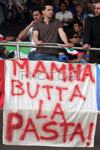 : Italian fans prior to the kick off of the Euro 2008 Group C soccer match between Netherlands and Italy at the Stade de Suisse stadium in Berne, Switzerland, Monday June 9, 2008.