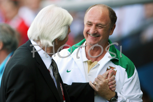 Geneve ,Switzerland - 11.06.2008 : Czech Republics coach Karel Brueckner, left, shakes hands with Portugals coach Luiz Felipe Scolari prior to the Euro 2008 Group A soccer match between Czech Republic and Portugal at the Stade de Geneve stadium in Geneva, Switzerland, Wednesday June 11, 2008. Photo by: Fabrizio Forte / DIPAG / PhotoSI