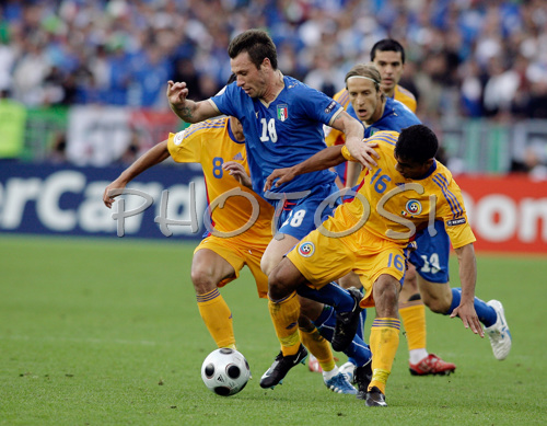 : Italys forward Antonio Cassano, left, fights for the ball with Romanias midfielder Banel Nicolita during the Euro 2008 Group C soccer match between Italy and Romania at the Letzigrund stadium in Zurich, Switzerland, Friday June 13, 2008.