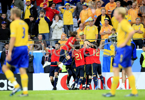 Innsburck ,Austria - 15.06.2008 : Spanish team celebrates goal of David Villa during the Euro 2008 Group D soccer match between Sweden and Spain at the Stadion Tivoli Neu in Innsbruck, Austria, Saturday June 14, 2008 Photo by: Fabrizio Forte / DIPAG / PhotoSI