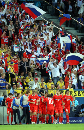 Innsbruck ,Austria - 18.06.2008 : Russian team celebrating victory in the Euro 2008 Group D soccer match between Russia and Sweden at the Stadion Tivoli Neu in Innsbruck, Austria, Saturday June 18, 2008. Photo by: Fabrizio Forte / DIPAG / PhotoSI