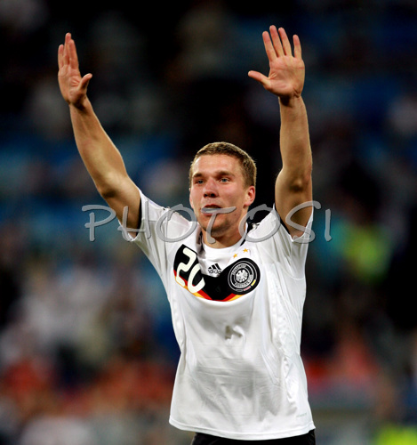 Basel ,Switzerland - 20.06.2008 : Germanys Lukas Podolski celebrating during the Euro 2008 quarterfinals soccer match between Germany and Portugal on the St. Jakob-Park stadium in Basel, Switzerland, Thursday June 18, 2008. Photo by: Fabrizio Forte / DIPAG / PhotoSI