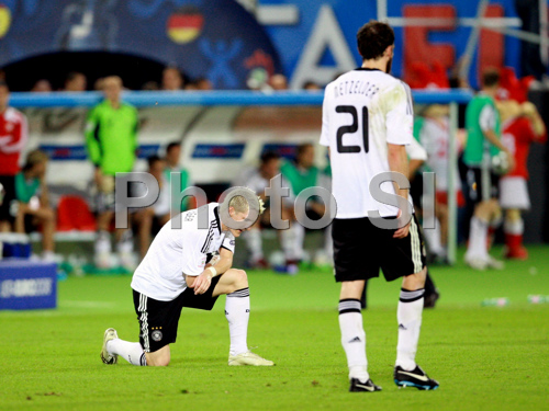 : Germanys Bastian Schweinsteiger and Christoph Metzelder disappointed after the Euro 2008 final soccer match between Spain and Germany at the Ernst Happel stadium in Vienna, Austria, Sunday June 29, 2008.