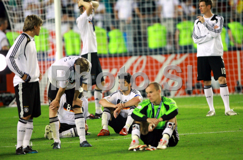 : Disappointed Germany team after the Euro 2008 final soccer match between Spain and Germany at the Ernst Happel stadium in Vienna, Austria, Sunday June 29, 2008.