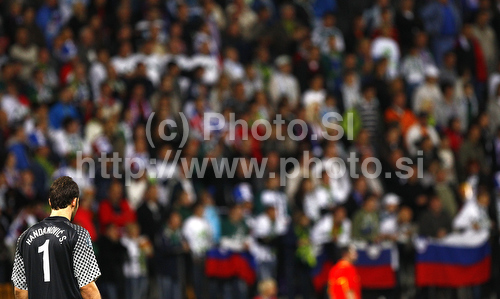 : Goalie Samir Handanovic of Slovenia during football match of first round of UEFA European championships qualifications between Slovenia and Northern Ireland. Match between Slovenia and Northern Ireland was played on Friday, 3rd of September 2010 in Ljudski Vrt arena in Maribor, Slovenia.