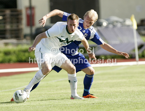 Ptuj ,Slovenia - 05.06.2012 : Duarte Tammilehto of Finland (R) during football match of UEFA U21 European championships 2013 qualifications between Slovenia and Finland. Qualifications match for UEFA U21 European championships 2013 between Slovenia and Finland, was played on Tuesday, 5th of June 2012, in Ptuj city Stadium in Ptuj, Slovenia. Photo by: Leena Jeroncic
