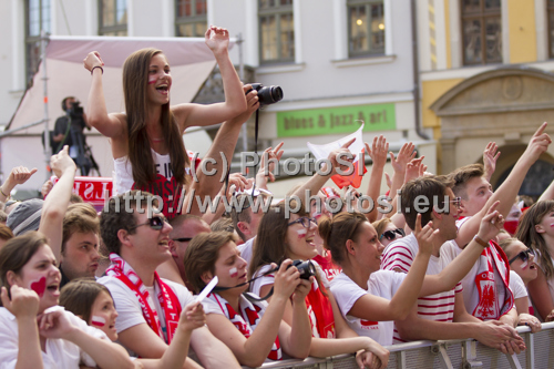 : Fans on concert of Ewy Farny and Ewa Farna during UEFA Football Euro 2012 match between. Poland and Czech republic Match of UEFA Football European Championships 2012 between Poland and Czech republic was played on Saturday, 16th of June 2012 in Wroclaw, Poland.