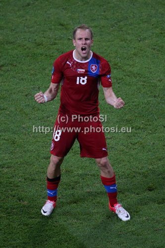 : Daniel Kolar of Czech republic celebrating after UEFA Football Euro 2012 match between Poland and Czech republic. Match of UEFA Football European Championships 2012 between Poland and Czech republic was played on Saturday, 16th of June 2012 in Wroclaw, Poland.