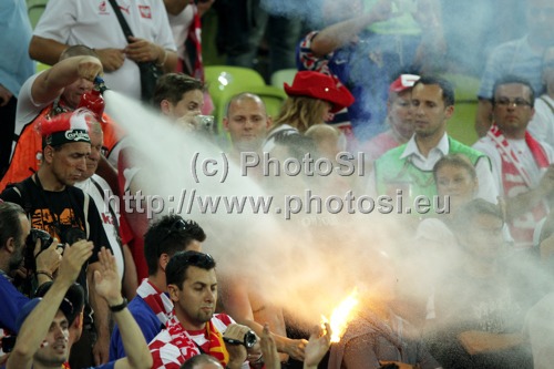 : Croatina fans during UEFA Football Euro 2012 match between Croatia and Spain. Match of UEFA Football European Championships 2012 between Croatia and Spain was played on Monday, 18th of June 2012 in Gdansk, Poland.