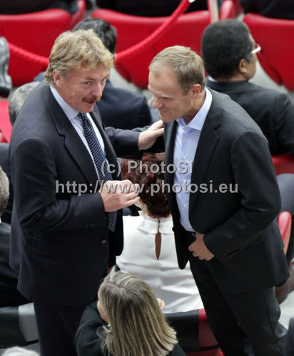 : Donald Tusk, Zbigniew Boniek during UEFA Football Euro 2012 quaterfinal match between Czech republic and Portugal. Match of UEFA Football European Championships 2012 between Czech republic and Portugal was played on Thursday, 22th of June 2012 in Gdansk, Poland.