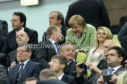 : 22.06.2012, GDANSK , PILKA NOZNA , FOOTBALL ,CWIERCFINAL MISTRZOSTWA EUROPY W PILCE NOZNEJ UEFA EURO 2012 QUARTERFINAL , NIEMCY VS GRECJA , GERMANY VS GREECE MICHEL PLATINI , ANGELA MERKEL , DONALD TUSK , MALGORZATA TUSK, FOT. ADAM JASTRZEBOWSKI / FOTO OLIMPIK during UEFA Football Euro 2012 quarter final match between Germany and Greece. Match of UEFA Football European Championships 2012 between Germany and Greece was played on Friday, 22th of June 2012 in Gdansk, Poland.