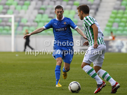 : Thomas Drage of Tromso IL (L) and Boban Jovic of NK Olimpija (R) during football match of second qualifying round of UEFA Europa League between NK Olimpija, Slovenia and Tromso IL, Norway. Match of second qualifying round of UEFA Europa League between NK Olimpija and Tromso IL was played in Stozice arena in Ljubljana, Slovenia, on Thursday, 19th of July 2012.