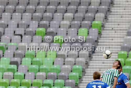 : Ruben Yttergard Jenssen of Tromso IL (L) and Blaz Bozic of NK Olimpija (R) during football match of second qualifying round of UEFA Europa League between NK Olimpija, Slovenia and Tromso IL, Norway. Match of second qualifying round of UEFA Europa League between NK Olimpija and Tromso IL was played in Stozice arena in Ljubljana, Slovenia, on Thursday, 19th of July 2012.