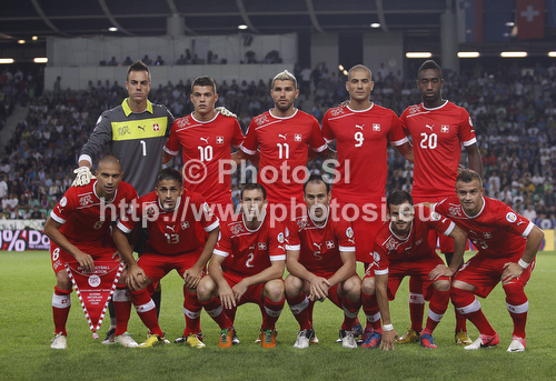 : Team of Switzerland before start of FIFA World cup 2014 qualification football match between Slovenia and Switzerland. Match between Slovenia and Switzerland was played in Stozice arena in Ljubljana, Slovenia, on Friday, 7th of September 2012.