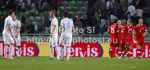 Ljubljana ,Slovenia - 07.09.2012 : Players of Switzerland celebrate their victory after end of FIFA World cup 2014 qualification football match between Slovenia and Switzerland. Match between Slovenia and Switzerland was played in Stozice arena in Ljubljana, Slovenia, on Friday, 7th of September 2012. Photo by: Primoz Jeroncic