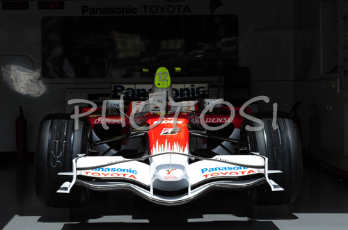 : Toyota TF108 before free practice for Formula 1 Grand Prix of France. Free practice for Formula 1 Grand Prix of France in Magny Cours was held on Thursday, 18th of June 2008 in Magny Cours, France.