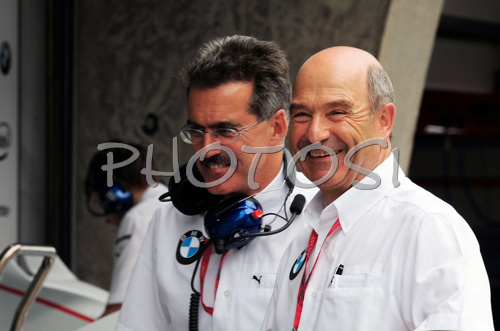 Shanghai ,China - 17.10.2008 : Peter Sauber (SUI), BMW Sauber F1 Team, Team Advisor and Dr. Mario Theissen (GER), BMW Sauber F1 Team, BMW Motorsport Director during free practice session for Formula 1 Grand Prix of China in Shanghai, China. Free practice for Formula 1 Grand Prix of China was held on Friday, 17th of October 2008 in Shanghai, China.
