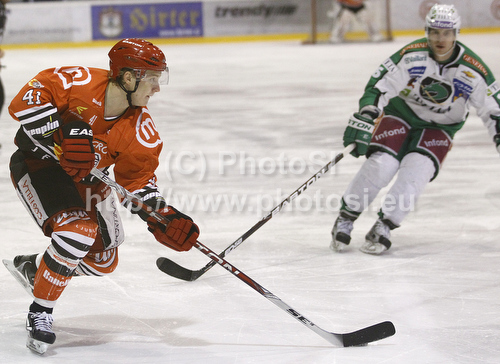 : Antti Pusa (no.41) of HK Acroni Jesenice during ice hockey match of EBEL league 2011-2012 between HK Acroni Jesenice and HDD Tilia Olimpija. Match between HK Acroni Jesenice and HDD Tilia Olimpija was held on Monday, 26th of December 2011 in Jesenice, Slovenia.