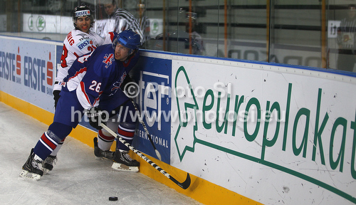 Ljubljana ,Slovenia - 16.04.2012 : Phil Hill (no.26) of Great Britain during match of IIHF Ice hockey World championship Division 1 Group A between Austria and Great Britain. Match between Austria and Great Britain of IIHF Ice hockey World championship Division 1 Group A was held in Stozice Arena in Ljubljana, Slovenia, on Monday, 16th of April 2012. Photo by: Primoz Jeroncic