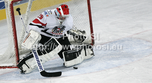 Ljubljana ,Slovenia - 16.04.2012 : Goalie Bernhard Starkbaum (no.29) of Austria during match of IIHF Ice hockey World championship Division 1 Group A between Austria and Great Britain. Match between Austria and Great Britain of IIHF Ice hockey World championship Division 1 Group A was held in Stozice Arena in Ljubljana, Slovenia, on Monday, 16th of April 2012. Photo by: Leena Jeroncic