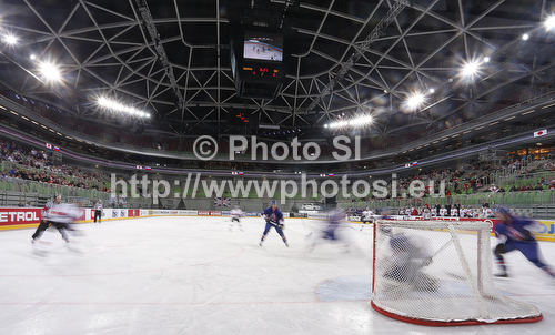 : Players of Great Britain defending their goal during match of IIHF Ice hockey World championship Division 1 Group A between Austria and Great Britain. Match between Austria and Great Britain of IIHF Ice hockey World championship Division 1 Group A was held in Stozice Arena in Ljubljana, Slovenia, on Monday, 16th of April 2012.