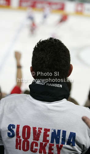 : Spectator during match of IIHF Ice hockey World championship Division 1 Group A between Slovenia and Hungary. Match between Slovenia and Hungary of IIHF Ice hockey World championship Division 1 Group A was held in Stozice Arena in Ljubljana, Slovenia, on Wednesday, 18th of April 2012.