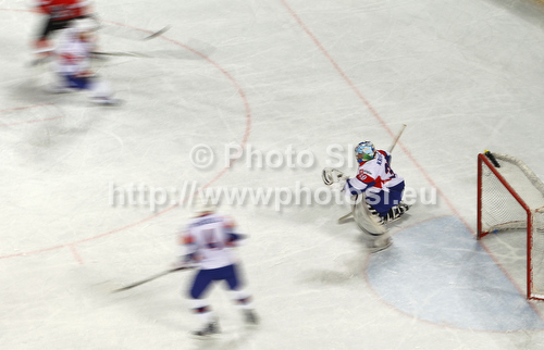 Ljubljana ,Slovenia - 21.04.2012 : Goalie Robert Kristan (no.30) of Slovenia in action during match of IIHF Ice hockey World championship Division 1 Group A between Slovenia and Austria. Match between Slovenia and Austria of IIHF Ice hockey World championship Division 1 Group A was held in Stozice Arena in Ljubljana, Slovenia, on Saturday, 21st of April 2012. Photo by: Primoz Jeroncic