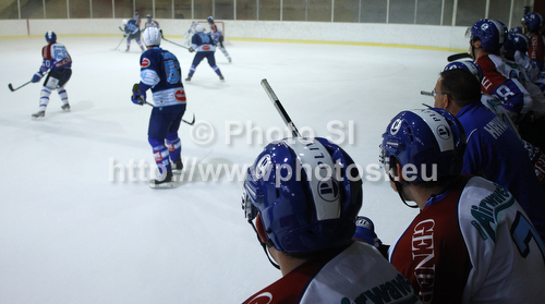 : Players of KHL Medvescak observing play during match of Rudi Hiti Ice hockey Summer league 2012 between VSV Villach and KHL Medvescak Zagreb. Match between VSV Villach and KHL Medvescak Zagreb was held in Bled Ice Arena in Bled, Slovenia, on Saturday, 18th of August 2012.