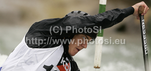 : Anze Bercic of Slovenia during International ICF slalom Tacen 2010 white water kayaking race. International ICF slalom Tacen 2010 white water kayak race was held on Saturday, 15th of May 2010 in Tacen, Slovenia.