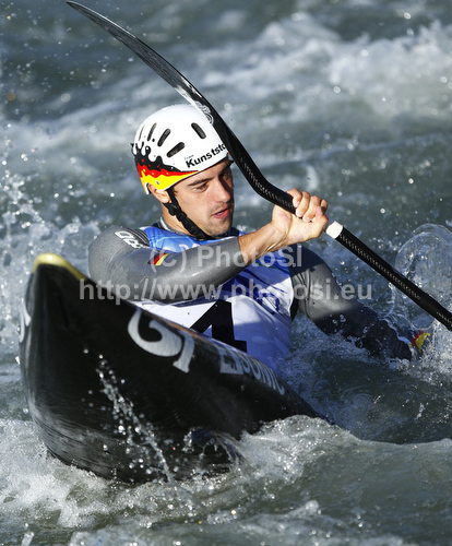 : Hannes Aigner of Germany during qualification kayak run of ICF Canoe Slalom World Championships 2010, which was held in Tacen, Slovenia, on Friday, 10th of September 2010.