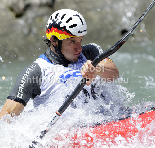 : Third placed Sebastian Schubert of Germany during Men K1 finals of ICF Canoe Slalom World Cup SLOKA 2011, which were held in Tacen, Slovenia, on Saturday, 25th of June 2011.