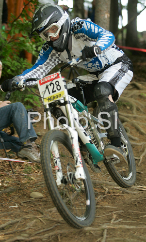 : Benny Strasser of Germany during men semi final run of first Downhill MTB World Cup 2008. First men race of UCI Nissan Mountain Bike World Cup 2008 was held in Maribor, Slovenia, on 11th of May 2008.