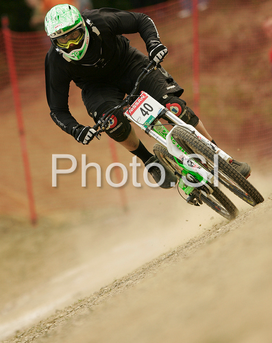 : Cedric Gracia of France during men final run of first Downhill MTB World Cup 2008. First men race of UCI Nissan Mountain Bike World Cup 2008 was held in Maribor, Slovenia, on 11th of May 2008.